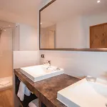 Chalet Alpenstern 빌라에는 2 침실이 있습니다. 욕실에는 개별 변기, 욕조, 욕조가 있습니다.